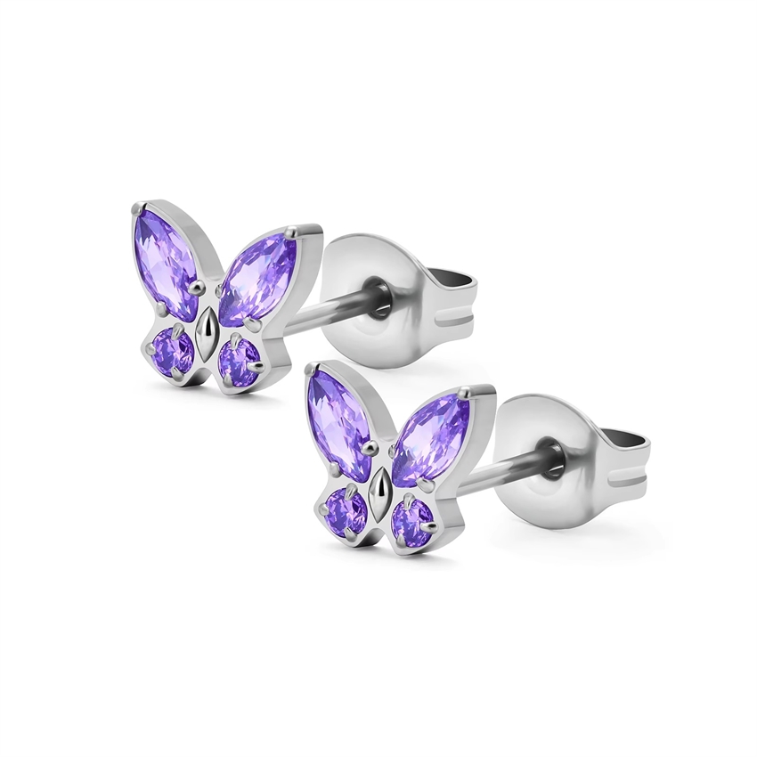 100% Titanium – Schmetterling Ohrstecker lila in Titanium