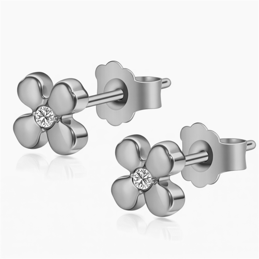 Diese feinen Ohrstecker sind aus 100 % Titanium gefertigt und gehören zur eigenen Marke von Schmuckzentrum. Das Design ist von einer einfachen Blumenform mit weichen, abgerundeten Blättern inspiriert und ein klarer Stein ist dezent in der Mitte platziert. Dies verleiht den Ohrsteckern einen harmonischen und ausgewogenen Ausdruck, bei dem die Details sauber und zeitlos erscheinen.