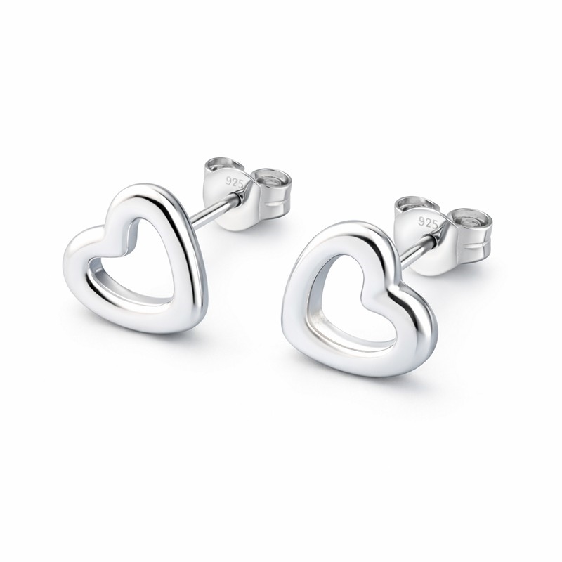 Diese Herz-Ohrstecker haben einen einfachen und eleganten Ausdruck und sind aus Sterlingsilber gefertigt. Das offene Herz verleiht einen leichten und zeitlosen Look, der perfekt sowohl für den Alltag als auch für festlichere Anlässe geeignet ist. Die glänzende Silberoberfläche reflektiert das Licht wunderschön und unterstreicht das klassische Design ohne Verwendung von Steinen.