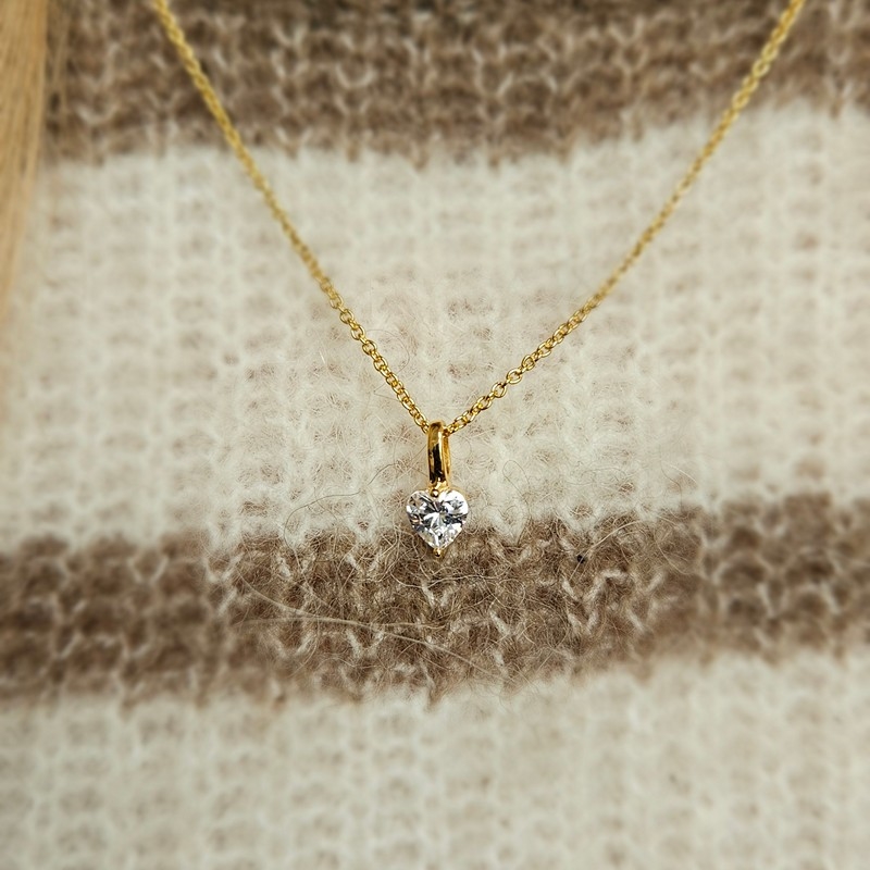 Der Anhänger ist leicht und sitzt schön auf der Brust, wo die weiche Form und der feine Stein einen femininen und romantischen Ausdruck schaffen. Es ist ein Schmuckstück, das Sie jeden Tag für einen zarten und ruhigen Look tragen können, aber auch in Kombination mit anderen Ketten, wenn Sie einen mehrschichtigen und modernen Ausdruck wünschen. Die Herzform ist klassisch und wird nie aus der Mode kommen, und dieser Anhänger wird daher schnell zu einem Ihrer Favoriten in der Schmuckschatulle.