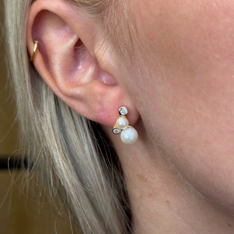 Perlenohrringe aus 8 Karat Gold mit zirkonia am Modell