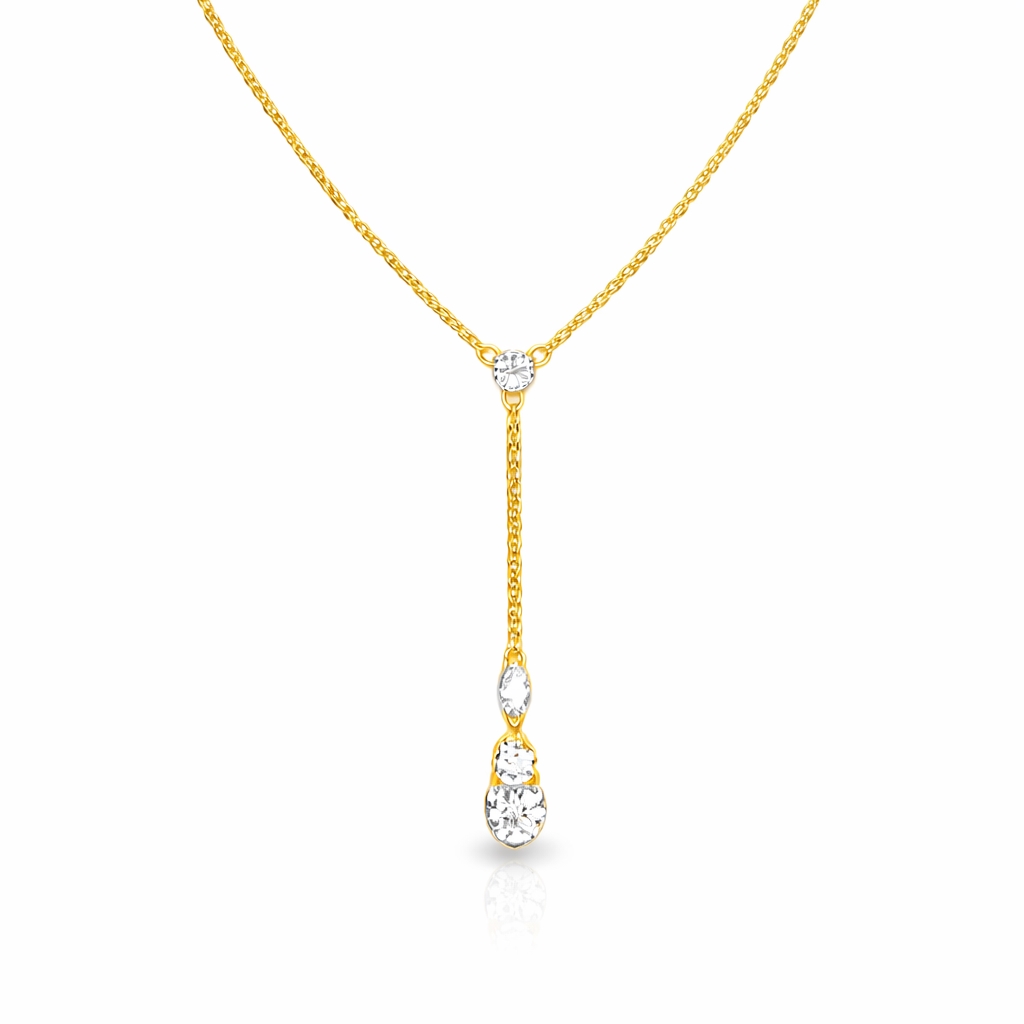 Dieser elegante Y-Anhänger aus 8 Karat Gold mit klaren zirkonia ist ein zeitloses und feminines Schmuckstück, das klassische Eleganz und Exklusivität ausstrahlt. Die beliebte Y-Halskette ist bekannt für ihren schlanken und verlängernden Ausdruck, der schön entlang des Halses fällt und den Ausschnitt von Blusen und Kleidern mit V-Ausschnitt betont. Eine ideale Wahl sowohl für den Alltag als auch für festliche Anlässe.