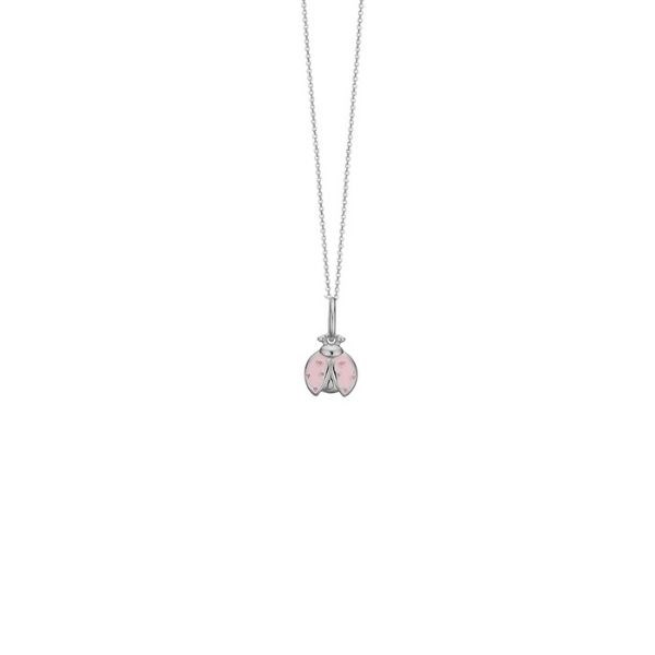 Feine, kleine Halskette mit einem Anhänger, der einen Marienkäfer formt, bemalt mit Emaille von Kranz & Ziegler. Die Halskette und der Anhänger sind aus 925 Sterlingsilber gefertigt, und die Kette misst 38 cm. Diese süße Halskette ist hauptsächlich für Kinder entworfen, aber wer sagt, dass nicht auch junggebliebene Seelen sie tragen können?