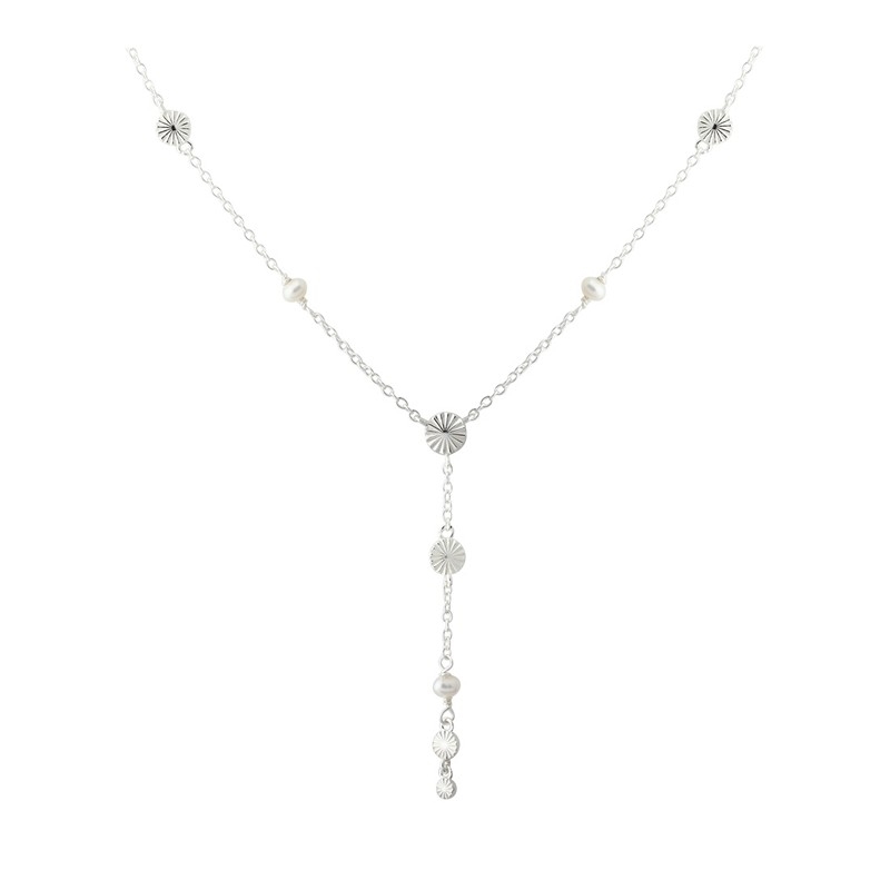 Das Y-förmige Design der Halskette sorgt für eine feminine und moderne Optik, während die kleinen Details entlang der Kette leichte Bewegung und Tiefe hinzufügen. Der Stil ist klar und macht die Halskette sowohl für den Alltag als auch für festlichere Anlässe geeignet. Sie kann allein für einen schlichten und eleganten Look getragen oder mit anderen Ketten für einen persönlicheren Layering-Look kombiniert werden.