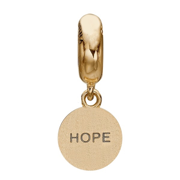 Christina Collect hat auch in diesem Jahr eine Zusammenarbeit mit der dänischen Krebshilfe Kræftens Bekæmpelse gestartet und unterstützt den Kampf gegen Krebs. Der Charm ist aus vergoldetem Silber gefertigt und besteht aus einem Anhänger in Form eines Kreises, mit der klassischen Schleife auf der einen Seite und "hope" auf der anderen Seite.