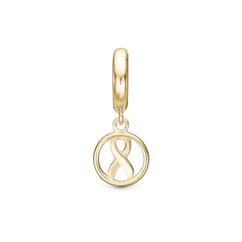STØT BRYSTERNE 2022 Charm in vergoldetem Sterlingsilber von Christina Collect. In Zusammenarbeit mit Kræftens Bekæmpelse hat Christina den diesjährigen Charm für eine Støt Brysterne Kampagne mit der immer symbolischen Schleife kreiert.
