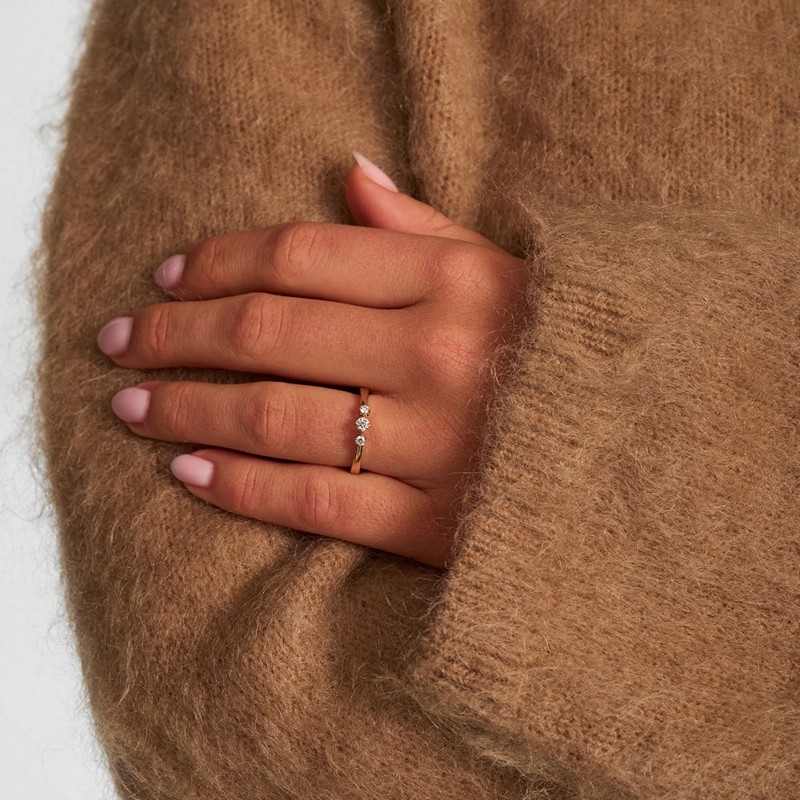 Die Trinity-Ring in 14 Karat Gold mit 3 wunderschönen Diamanten von Mads Z aus der Serie "CROWN". Trinity ist ein Ring, bei dem die schönen Diamanten richtig zur Geltung kommen, da er in einer einfachen Fassung mit 4 kleineren Krappen eingesetzt ist und daher von allen Seiten sichtbar ist.