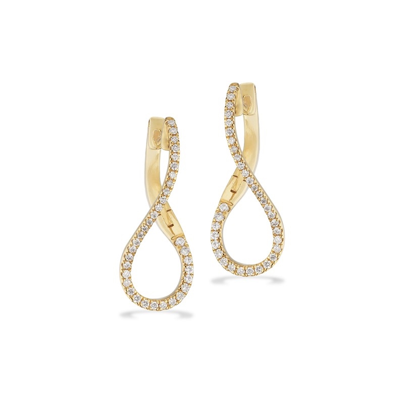 Diese schönen Dazzling Creolen aus 14 Karat Gold sind eine elegante Wahl für diejenigen, die ein klassisches Schmuckstück mit einem dezenten Hauch von Luxus wünschen. Die Ohrringe sind als elegante, gedrehte Tropfen gestaltet. Sie beginnen oben als weiche, leicht gebogene Linie, die sich leicht dreht und in eine längliche Tropfenform übergeht, die in der Mitte offen ist. Dies verleiht einen Ausdruck, der an eine leicht gedrehte Schleife oder ein dezentes Infinity-Twist erinnert.