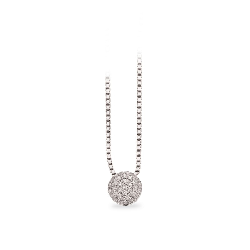 Diese elegante Weißgold-Halskette mit Diamanten von Dazzling ist ein klassisches Schmuckstück in einem zeitlosen und femininen Design. Der Anhänger ist aus 14 Karat Weißgold gefertigt, wobei Brillantschliff-Diamanten einen leichten und harmonischen Rahmen um die Polet-Form bilden.