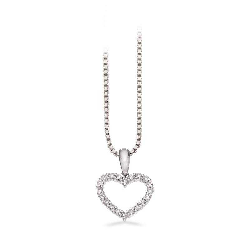 Die Diamanten haben die Qualität H-W/SI und ergeben zusammen 0,25 Karat. Das offene Herz verleiht dem Schmuckstück einen luftigen Ausdruck, während die feine Diamantbesetzung einen dezenten Hauch von Luxus hinzufügt. Die Halskette kann allein getragen werden, oder Sie können mehrere Ketten hinzufügen, um einen persönlicheren Look zu erzielen.