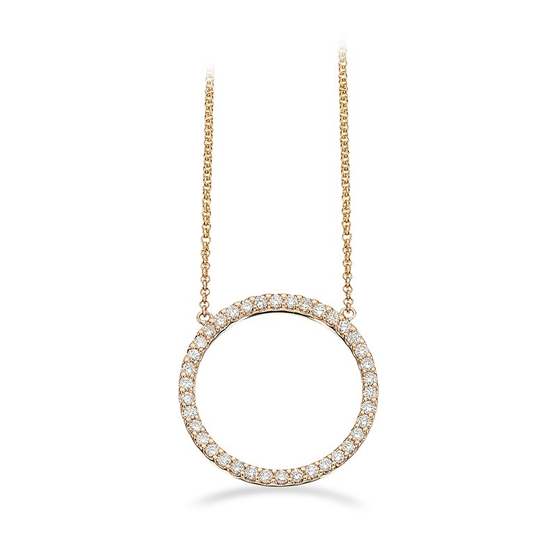 Die Diamanten haben die Qualität H-W/SI und ergeben zusammen 0,34 Karat. Die offene Kreisform verleiht dem Schmuckstück einen luftigen und eleganten Ausdruck, während die feine Diamantbesetzung einen dezenten Hauch von Luxus hinzufügt. Die Halskette kann allein für einen einfachen Look getragen oder mit anderen Ketten für einen persönlicheren Ausdruck kombiniert werden.
