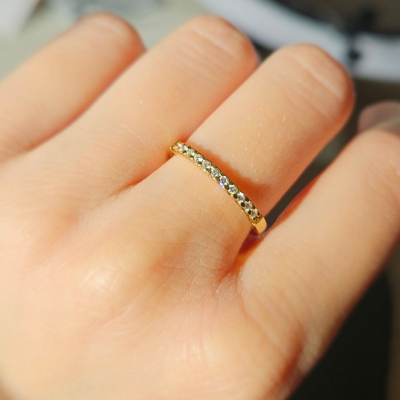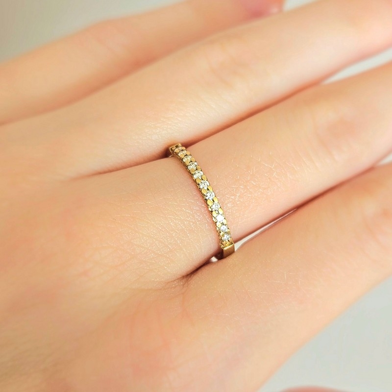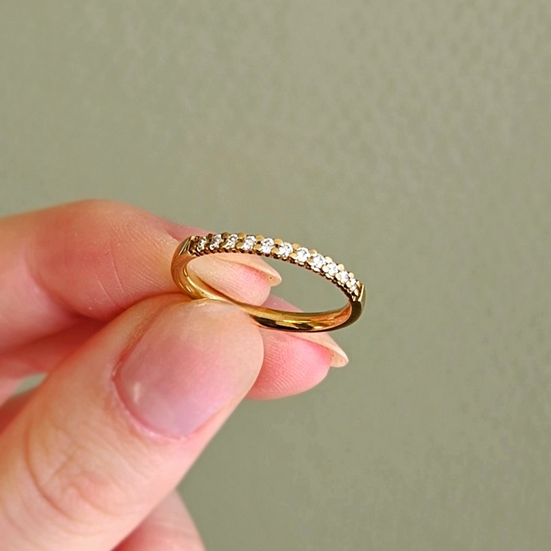 Allianzring in 8 Karat Gold mit 11 Brillanten – insgesamt 0,16 Karat. Dieser elegante Allianzring in 8 Karat Gold verkörpert klassische Schönheit und zeitlose Eleganz. Der Ring ist mit 11 funkelnden Brillanten von insgesamt 0,16 Karat verziert, die behutsam in die schlanke Ringschiene gefasst sind. Dies schafft einen schönen und harmonischen Ausdruck, bei dem jeder Diamant das Licht einfängt und der Hand einen subtilen, aber exklusiven Glanz verleiht.