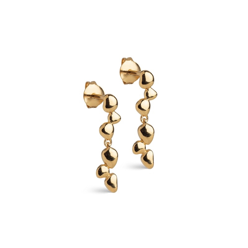 Die glänzende vergoldete Oberfläche betont die organischen Formen und verleiht den Ohrringen einen exklusiven Look, der sie leicht über verschiedene Outfits und Jahreszeiten hinweg zu stylen macht. Mit ihrer leichten Konstruktion sind sie angenehm zu tragen und eignen sich perfekt sowohl für den Alltag als auch für festliche Anlässe. Die Ohrringe messen 22 x 5 mm und haben eine Größe, die auffällig ist, ohne schwer zu wirken.