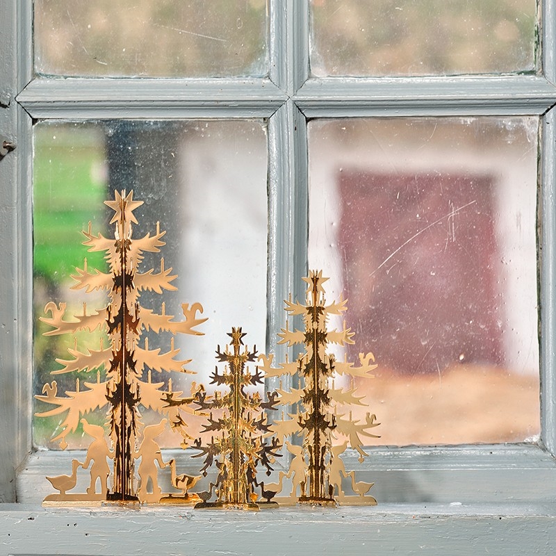 Der kleine Weihnachtsbaum aus 18 kt vergoldetem Messing inspiriert von H.C. Andersens originalen Scherenschnitten.
