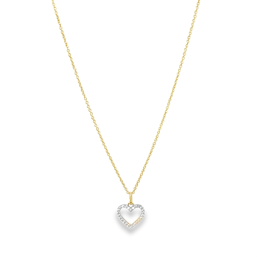 Herzanhänger in 8kt Gold mit zirkonia und vergoldeter Silberkette