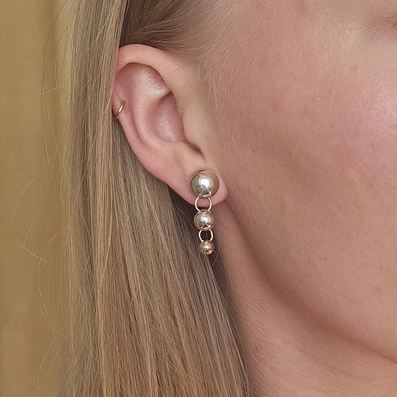 Der Atomic Drop Stud in glänzendem silber von Jane Kønig misst feine 2,5 cm in der Länge und besteht aus 3 Kugeln in verschiedenen Größen. Die Ohrringe sind wunderschön zu kombinieren mit dem großen Big Atomic Drop Stud für einen exklusiven Look in silber.