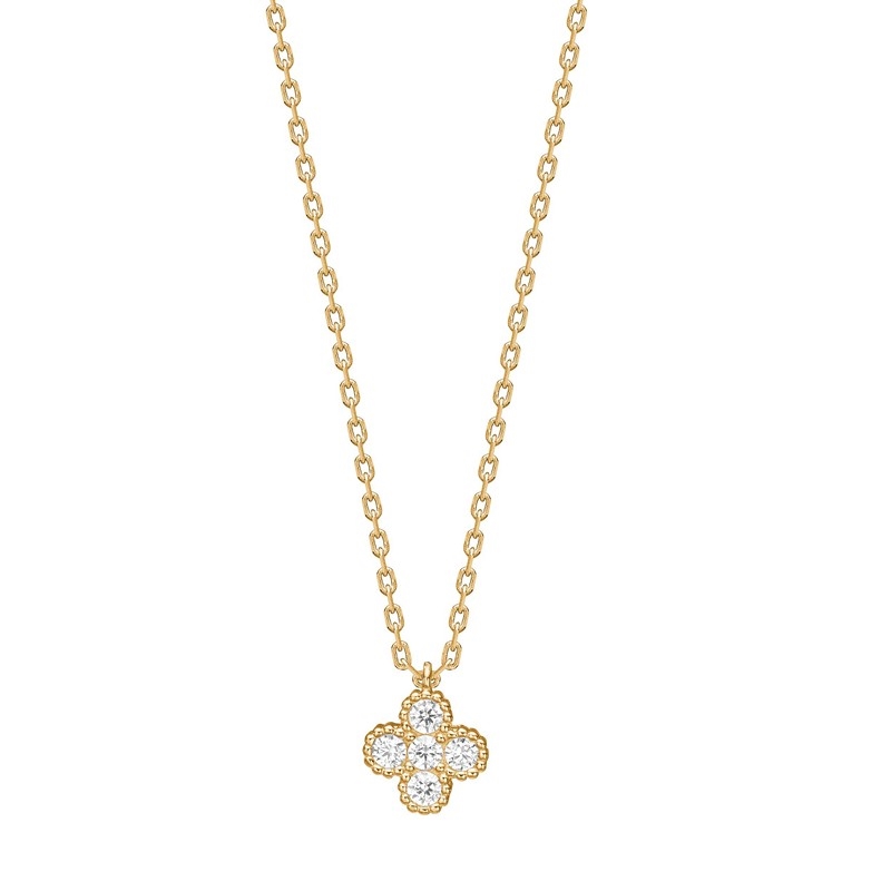 Die SIGNENOR Halskette von Joanli Nor ist ein elegantes und feminines Schmuckstück mit einem klassischen Ausdruck und feinen, glitzernden Details. Die Halskette ist aus 925er Sterlingsilber gefertigt, das mit 18 Karat Gold vergoldet ist, und hat einen kleinen Anhänger in Form eines weichen, kleeblattähnlichen Motivs. Der Anhänger ist mit klaren zirkonia besetzt, die so angeordnet sind, dass sie ein schönes und harmonisches Spiel auf der Oberfläche erzeugen.