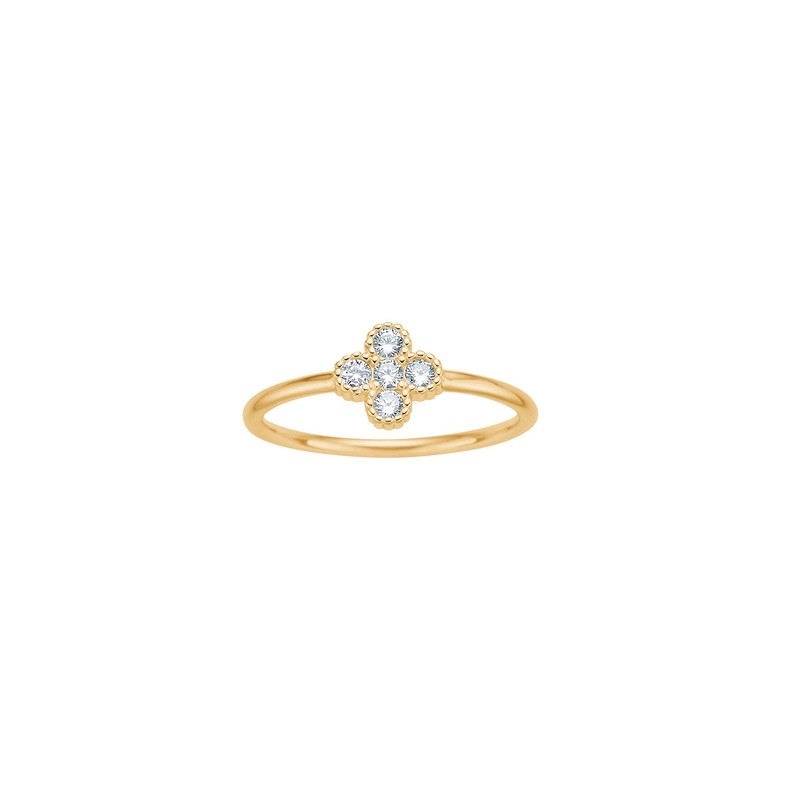 Die Kombination aus dem warmen Glanz des Goldes und den klaren zirkonia macht den Ring einfach zu stylen. Ein zeitloser Ring mit femininen Details, der perfekt in jede Schmucksammlung passt.
