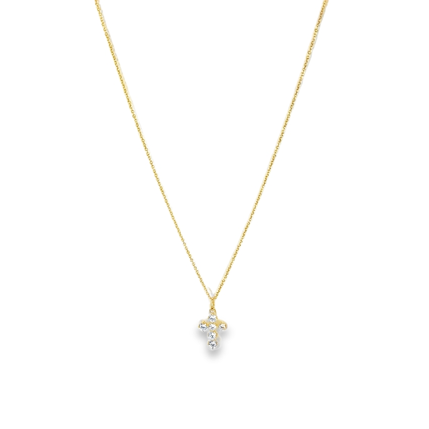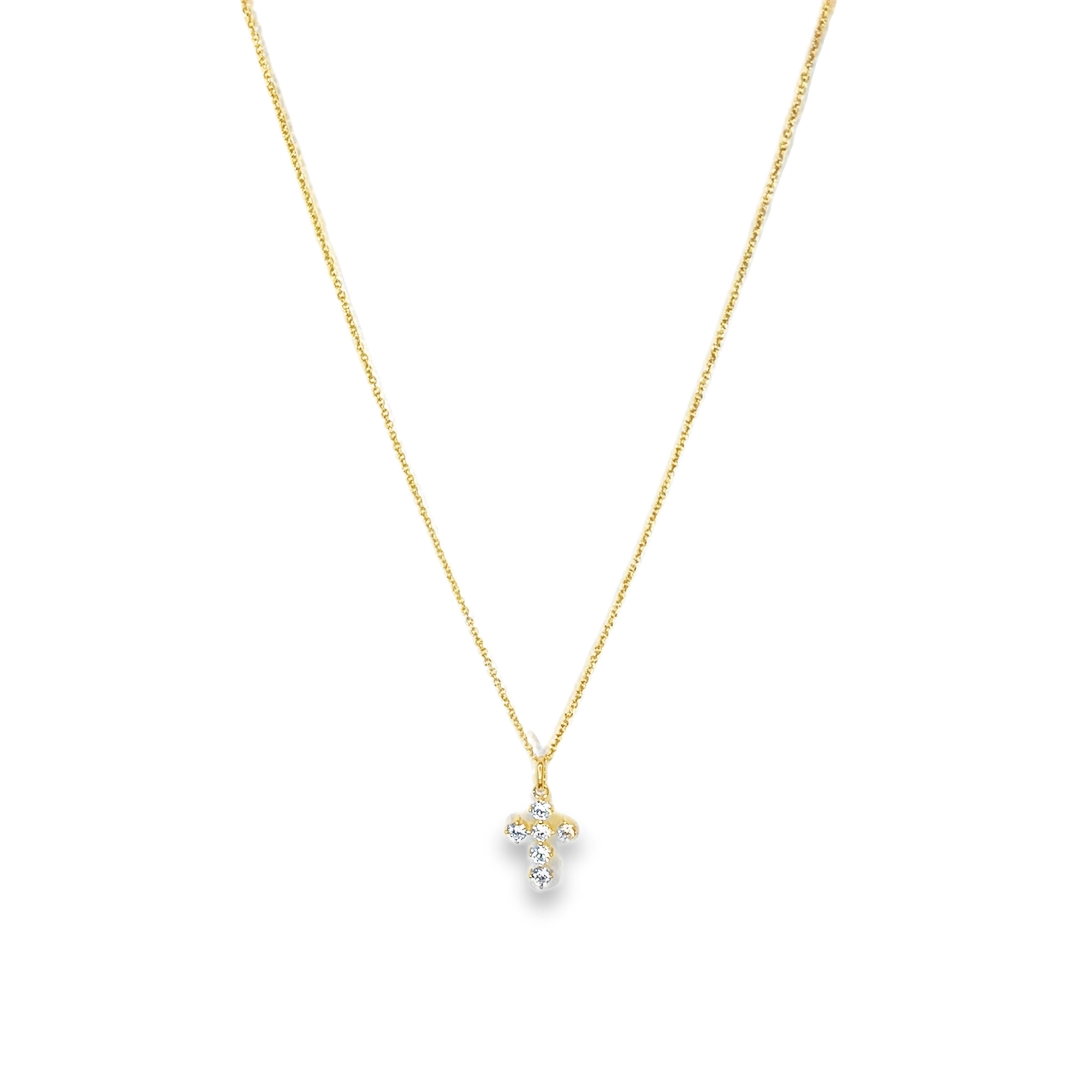 Kreuzanhänger in 8kt Gold mit zirkonia und vergoldeter Silberkette
