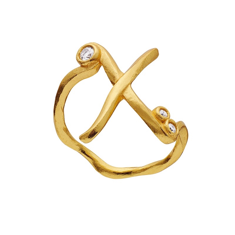 Maanesten - Alphabet Ring in Vergoldet Silber - X