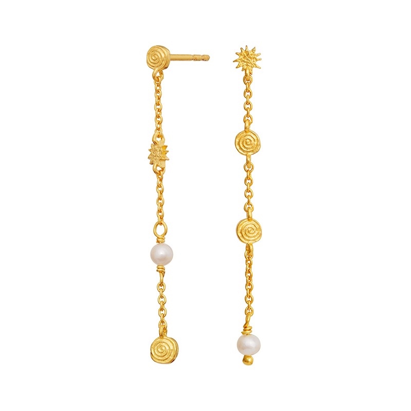 Die Evante Ohrringe von Maanesten sind eine elegante Wahl für dich, wenn du ein Schmuckstück mit feinen Details und einer leichten Ausstrahlung suchst. Die Ohrringe sind aus Vergoldet Silber gefertigt und kombinieren kleine dekorative Symbole mit Süßwasserperlen, was für einen weichen und lebendigen Look sorgt.