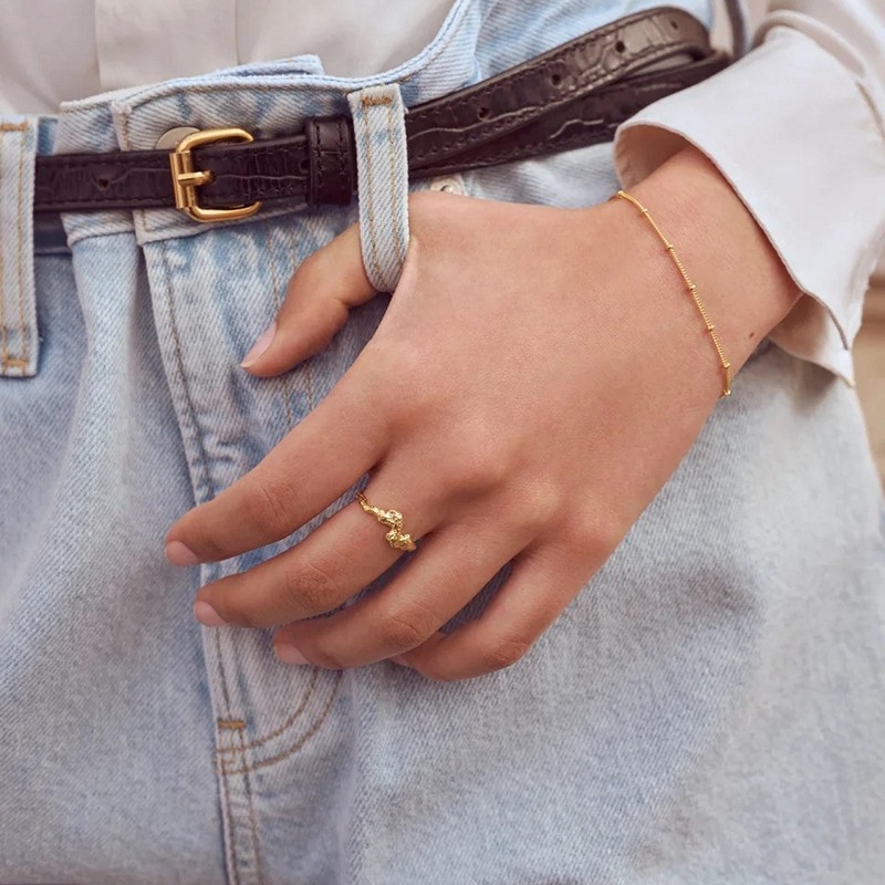 Nala-Armband von Maanesten mit kleinen schönen vergoldeten Perlen an der Kette. Das Armband kann auf die Länge des Handgelenks eingestellt werden.