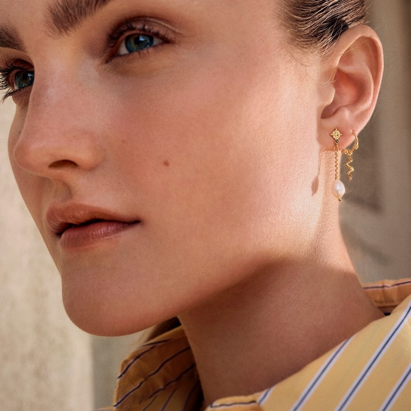 Nyla Ohrring in vergoldet mit Mond und Perle 2Nyla Ohrring in vergoldet mit Mond und PerleMaanesten - Nyla Ohrring in vergoldetem Silber
