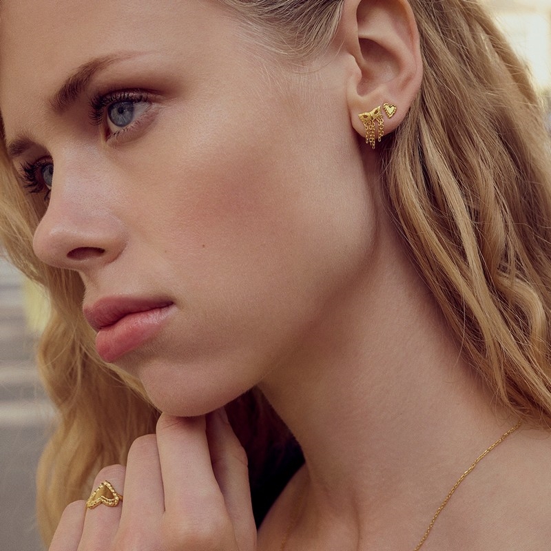 Die Ohrringe sind Teil von Maanestens Winterkollektion 2025, Rebel Hearts – like Romeo and Juliet. Die Kollektion ist inspiriert von Shakespeares ikonischem Liebesdrama und fängt die Essenz junger Liebe ein – intensiv, leidenschaftlich und furchtlos. Die Schmuckstücke feiern den Mut, bedingungslos zu lieben, und zelebrieren die Momente, in denen die Gefühle die Führung übernehmen.