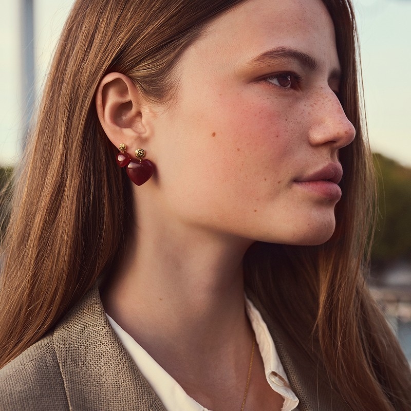 Maanesten ist bekannt für seine organischen und boheme-inspirierten Designs, bei denen weiche Formen, Liebe zum Detail und farbige Steine eine zentrale Rolle spielen. Die Rubina Heart Ohrringe sind ein feines Beispiel für die Fähigkeit der Marke, Schmuck zu schaffen, der sowohl modern als auch zeitlos wirkt, mit einem künstlerischen Touch, der jedes Design besonders macht.