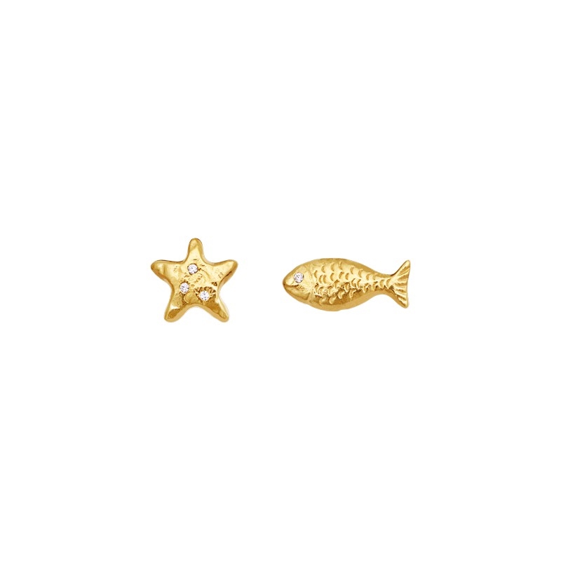 Oft sind es die kleinsten Details, die die größte Freude bereiten. Mit ihrem feinen Ausdruck stehen die Ruta Ohrringe für eine stille Schönheit: Der Fisch symbolisiert Bewegung und Freiheit, während der Seestern als Zeichen für Ruhe, Balance und Erneuerung steht. Zusammen erzählen sie eine zarte Geschichte von den ruhigen Sommermomenten am Wasser.