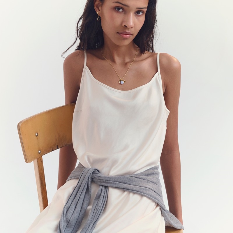 Die feine Kettenstruktur verleiht ein leichtes, glitzerndes Spiel im Licht und macht die Halskette perfekt sowohl für den Alltag als auch für festlichere Anlässe. Die vergoldete Oberfläche verleiht Wärme und Exklusivität, während der einfache Ausdruck der Kette es leicht macht, sie mit anderen Maanesten-Halsketten für einen Layering-Look zu kombinieren.