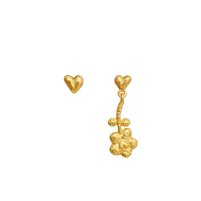 Veneda Ohrstecker von Maanesten sind eine schöne Wahl für dich, wenn du kleine Schmuckstücke mit einem persönlichen Detail magst. Die Ohrstecker sind aus vergoldet Silber gefertigt und haben ein asymmetrisches Design: Der eine ist als kleines Herz geformt, während der andere ein Herz mit einer kleinen, hängenden Blume kombiniert.