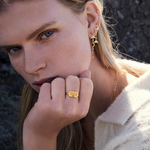 Die Ohrstecker sind Teil der Herbstkollektion 2021 von Maanesten, Moonrise Magic. Die Kollektion ist eine Hommage an die Mystik der Nacht und der Dunkelheit und ist voller Symbole wie perlenbesetzter Halbmonde, kraftvoller Edelsteine und Nachtfalter im Mondschein. Die Designerin Lotte Venø Callesen erzählt, dass Magie seit Tausenden von Jahren eine Verbindung zwischen Mensch und Natur darstellt. Heute sehnen wir uns mehr denn je nach der Erdung und Ruhe, die uns die Gemeinschaft der Natur geben kann – und wir träumen von kleinen Fluchten aus der Realität in einem hektischen Alltag.