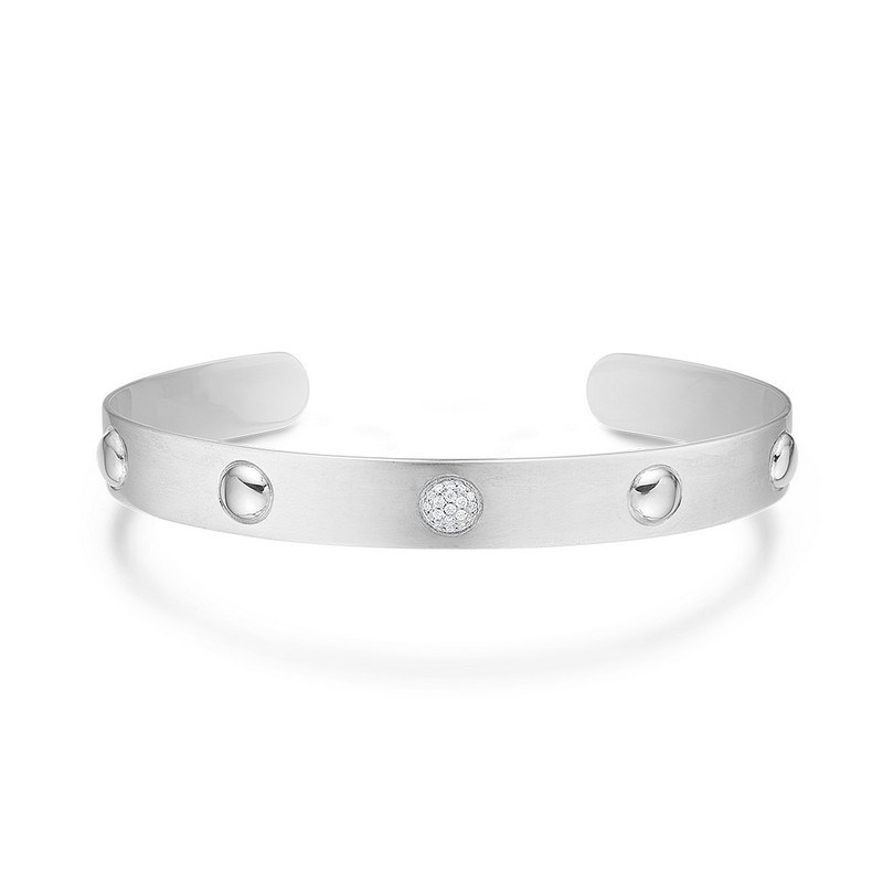 Dome Armband in Silber aus der Mads Z Silver Label Kollektion. Das Armband ist als Armreif gestaltet, der schön um das Handgelenk liegt und die feinsten kleinen Kuppeln hat, von denen die zentrale mit kleinen, feinen und funkelnden Steinen verziert ist.