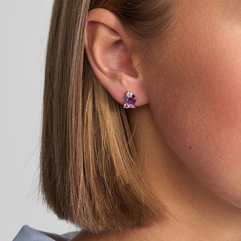 Amethyst, pinker Amethyst, pinker Saphir, Rubin, Saphir, Ceylon-Saphir und Sky Blue Topas – alle ausgewählt für ihr intensives Farbspiel und ihre ästhetische Zusammensetzung. Die Farbpalette erinnert an die Magie des Spätsommers und schafft einen lebendigen, femininen Ausdruck, der das Licht aus allen Winkeln wunderschön einfängt.