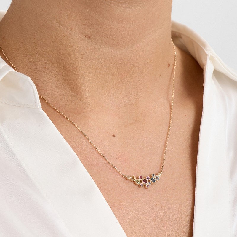 Luxury Rainbow Halskette in 14 Karat Gold mit Steinen von Mads ZLuxury Rainbow Halskette in 14 Karat Gold mit Steinen von Mads Z