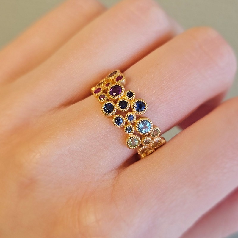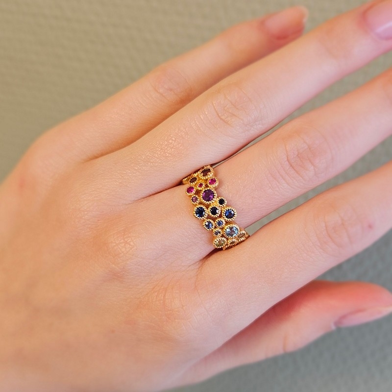 Mads Z - Luxury Rainbow Ring mit Natursteinen in 14kt. Gold - Groß
