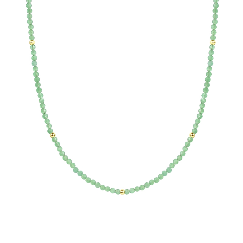 Kamilla Halskette in 18 kt vergoldetem Silber von MerlePerle mit den grünen Kristallen ist so fein, dass sie sich wunderbar mit deinen anderen Halsketten und Schmuckstücken kombinieren lässt. Zwischen den Kristallen verbergen sich kleine Lichtblitze in Form von vergoldeten Perlen. Die Halskette hat eine Länge von 41 + 3 cm mit dem kleinen Verlängerungsstück, das es ermöglicht, die Halskette etwas zu variieren.