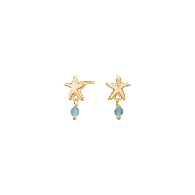 Unter jedem Seestern hängt eine kleine hellblaue Perle, die ein dezentes Farbspiel hinzufügt und den maritimen und sommerlichen Ausdruck unterstreicht. Ein feines und verspieltes Schmuckstück, das perfekt zu Alltag, Urlaub und leichten Sommeroutfits passt.