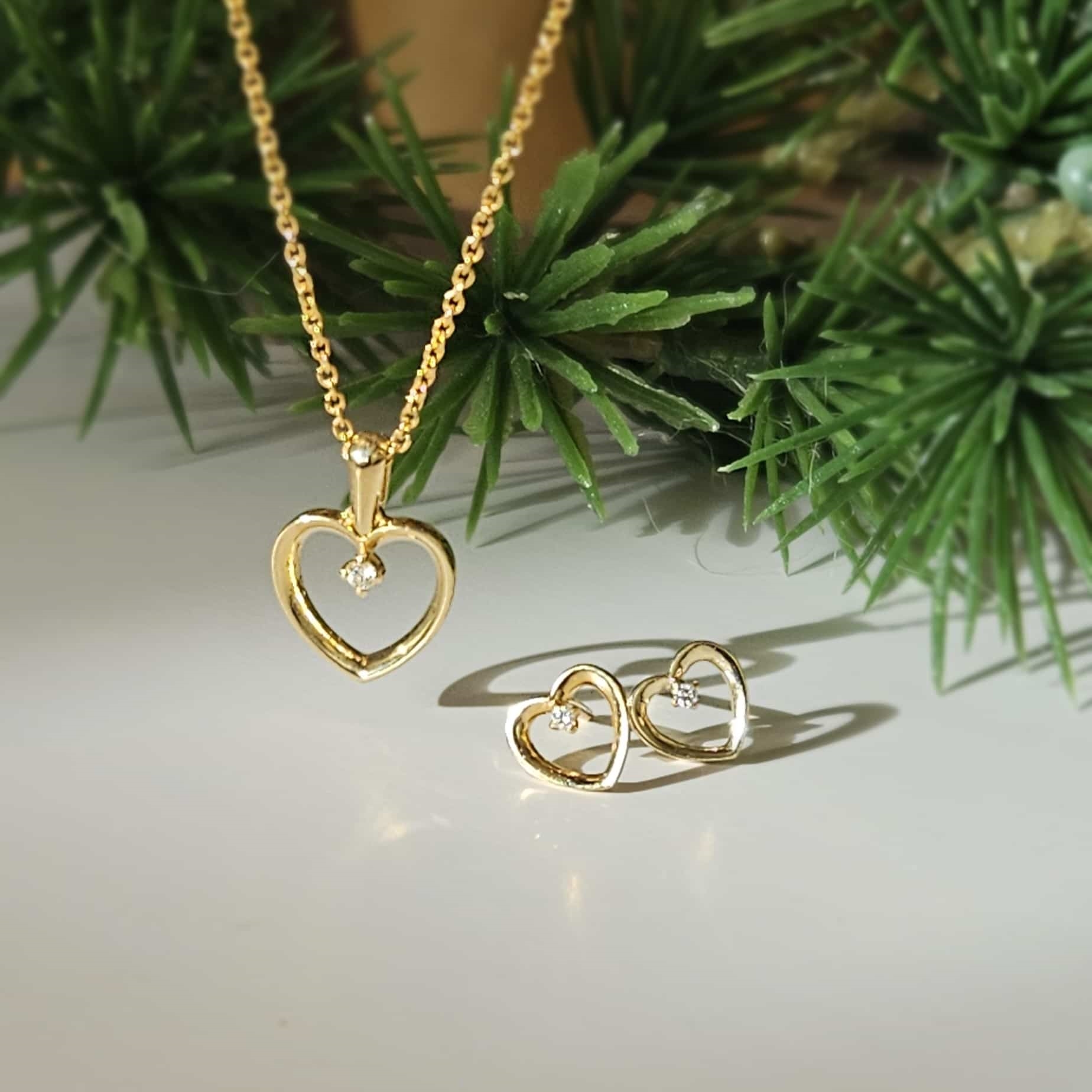 Herzset von NURAN ist ein Symbol für Liebe und zeitlose EleganzHerzset in 14 Karat Gold mit Brillanten von NURAN.Nuran - 14 kt Goldset Ohrringe und Anhänger mit BrillantenNuran - 14 kt Goldset Ohrringe und Anhänger mit BrillantenNuran - 14 kt Goldset Ohrringe und Anhänger mit BrillantenNuran - 14 kt Goldset Ohrringe und Anhänger mit Brillanten
