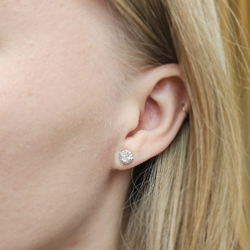 Rosetten-Ohrstecker in Silber mit quadratischem zirkonia und kleinen umgebenden Steinen