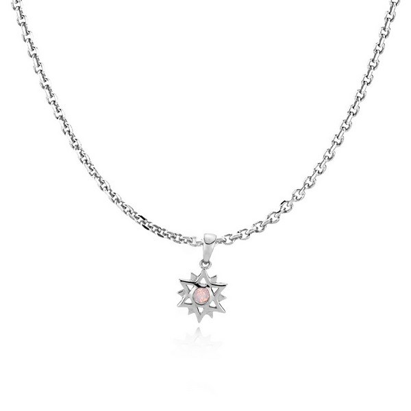 Olivia X Sistie Halskette in Silber mit einem schönen pinken Opal. Der Anhänger ist geformt wie eine kleine Sonne, in deren Mitte sich ein schöner Opal befindet, der die Sonnenstrahlen reflektiert.
