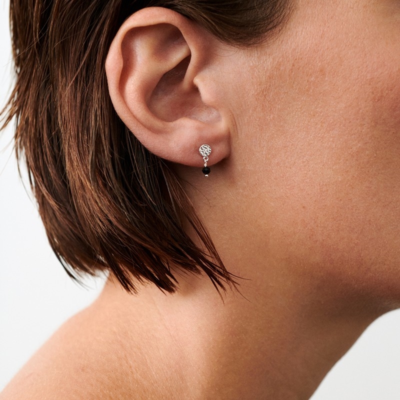 Die Black Nature Ohrstecker in Silber von Pernille Corydon sind Teil der stimmungsvollen Winterkollektion Endless Love. Die Kollektion ist inspiriert von der rauen Schönheit der Natur und der Dunkelheit des Winters, wo der Kontrast zwischen Licht und Schatten eine faszinierende Atmosphäre schafft. Die Ohrstecker sind mit einem kleinen facettierten Onyxstein gestaltet, der elegant unter dem feinen Silberstift hängt. Die Kombination aus dem kühlen Glanz des Silbers und dem tiefschwarzen Stein verleiht dem Schmuckstück einen Ausdruck, der sowohl schlicht, feminin als auch raffiniert ist.