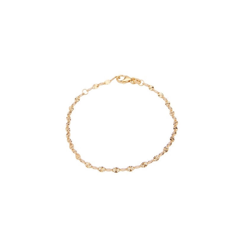 Das Armband hat eine verstellbare Länge von 16 bis 17,5 cm, sodass es schön und angenehm am Handgelenk sitzt. Die glänzende vergoldete Oberfläche sorgt für einen warmen Schimmer und betont die feinen Details des Designs, wodurch es sich leicht sowohl zu neutralen als auch zu farbenfroheren Outfits stylen lässt.