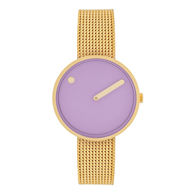 Picto Lavender Zifferblatt mit mattem Mesh-Armband in IP Gold