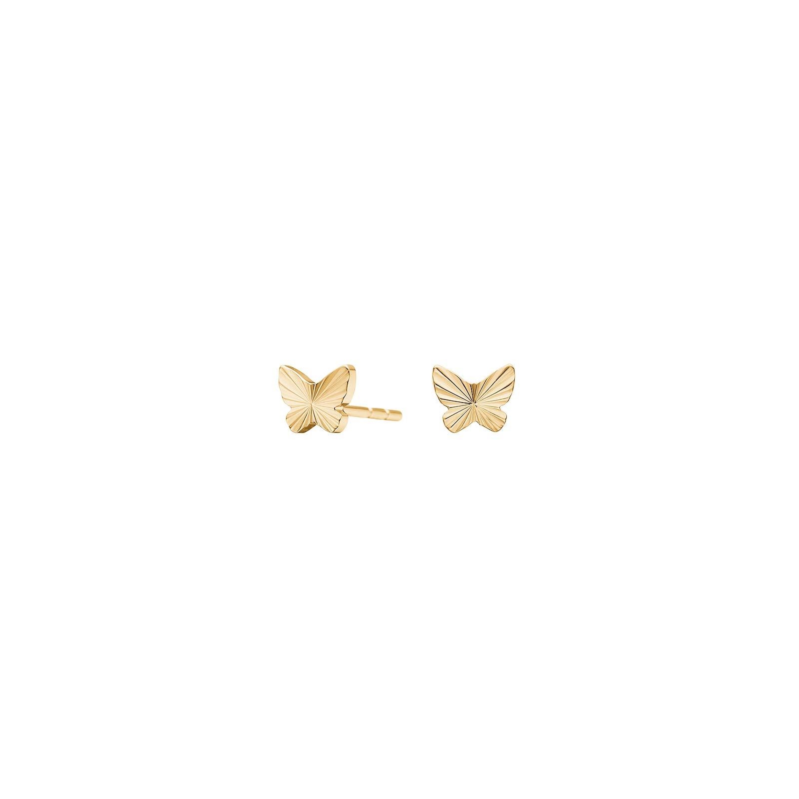 Diese niedlichen Ohrstecker aus der Pure Titanium-Kollektion sind aus vergoldetem, nickelfreiem Titan gefertigt und in Form kleiner Schmetterlinge gestaltet. Die Ohrringe messen 4,5 mm und haben ein schönes, geprägtes Muster auf der Oberfläche, das dem Schmetterlingsmotiv einen leichten und eleganten Ausdruck verleiht.