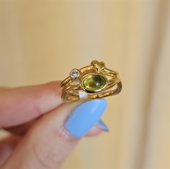 Die Bliss Schmuckserie ist eine Serie von Schmuckstücken mit grünen Steinen als Hauptelement. Der grüne Serpentinstein symbolisiert Frieden und Ruhe und ist ein sanfter Stein, der gut für Meditation und Entspannung ist. Der schöne Schmuck ist mit einer Kombination aus Serpentinsteinen und kleineren weißen Zirkonia gefertigt, die dem Schmuck ein leichteres Aussehen verleihen. Der Schmuck ist in Vergoldet Silber gefertigt und zusammen mit den Steinen finden Sie mehrere kleine Blätter in dem goldenen Material.