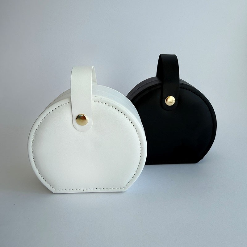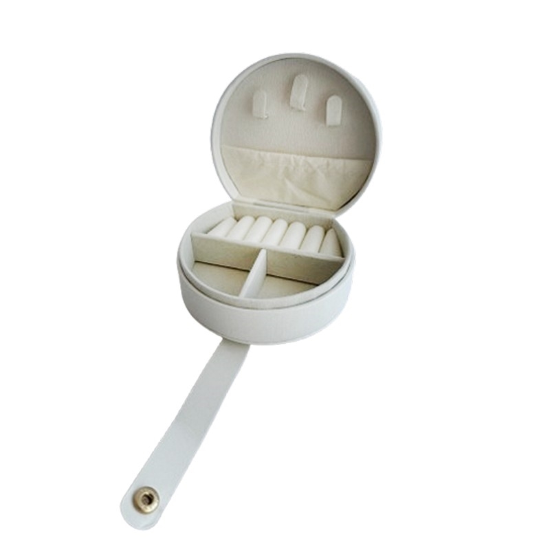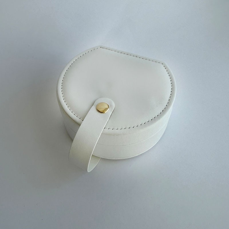 Dieses runde Schmuckkästchen aus weißem Kunstleder ist eine praktische und schlichte Lösung zur Aufbewahrung deiner Schmuckstücke – sowohl zu Hause als auch unterwegs. Das kompakte Design macht es leicht, es in der Tasche oder im Koffer mitzunehmen, ohne unnötig Platz einzunehmen, und bietet gleichzeitig ausreichend Raum für deine meistgetragenen Schmuckstücke.