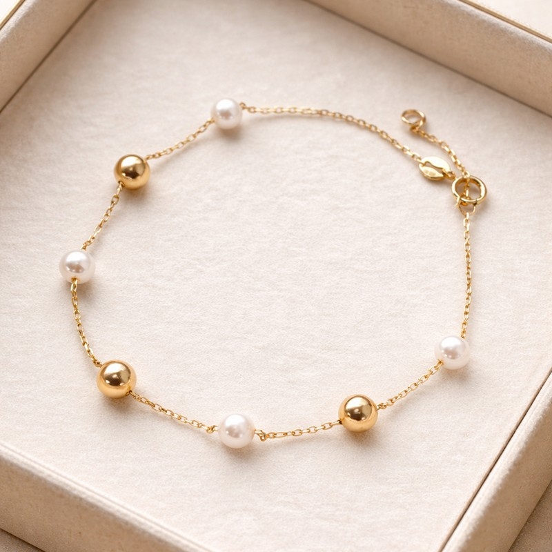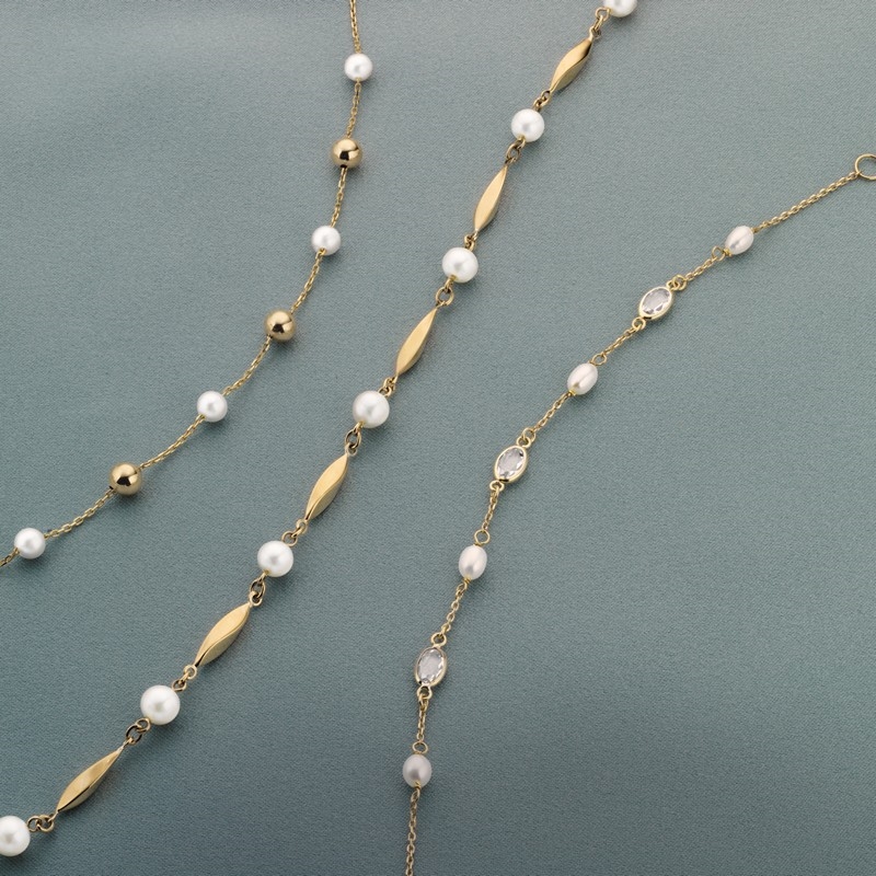 Die Kombination aus den weichen Perlen und den glatten Golddetails schafft einen feinen Kontrast, der dem Armband Charakter verleiht, ohne die Leichtigkeit des Designs zu verlieren. Dadurch eignet sich das Schmuckstück sowohl für den Alltag als auch für besondere Anlässe, bei denen Sie einen eleganten, aber entspannten Ausdruck wünschen.