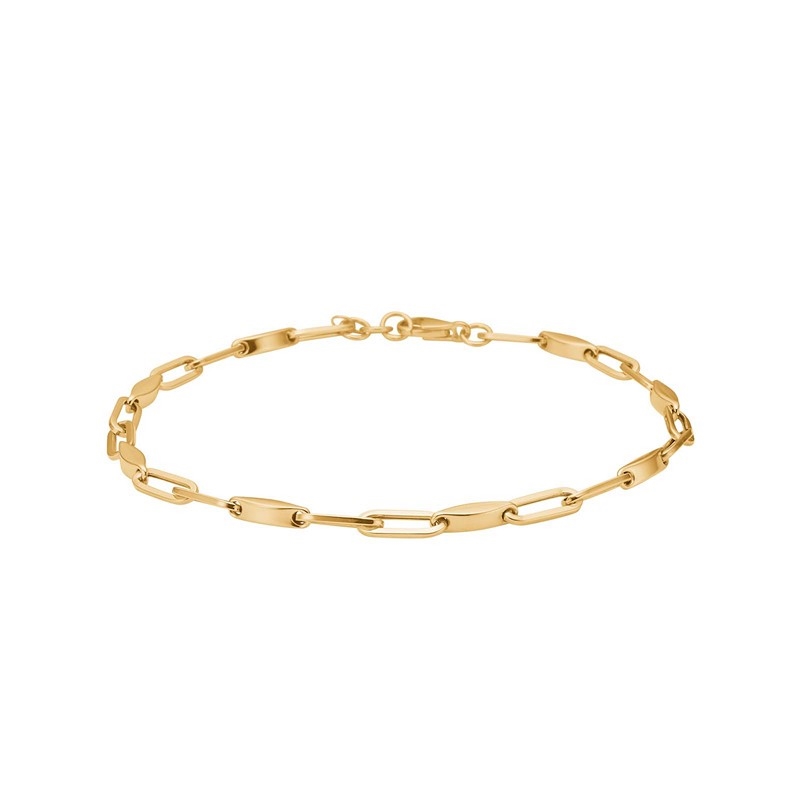 Die variierenden Gliederformen verleihen dem Armband einen lebendigen und exklusiven Ausdruck, während es seine Leichtigkeit und seinen Komfort am Handgelenk bewahrt. Das warme 8 kt Gold betont die klaren Linien des Designs und macht es einfach, das Armband mit anderen Goldarmbändern, Uhren oder schlichteren Schmuckstücken zu kombinieren.